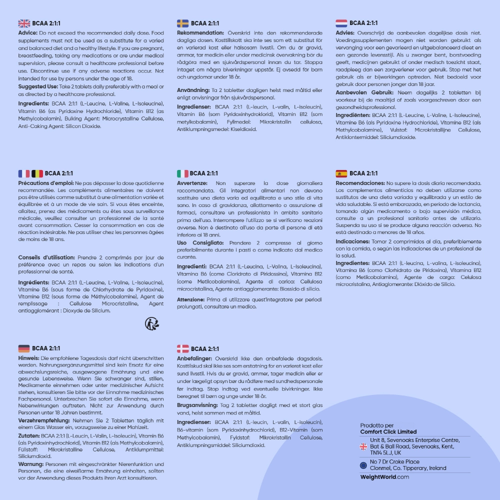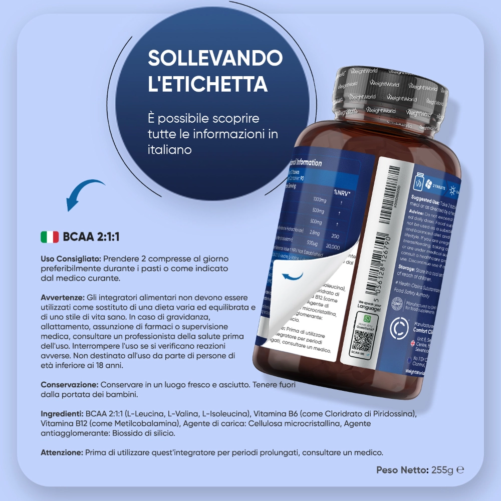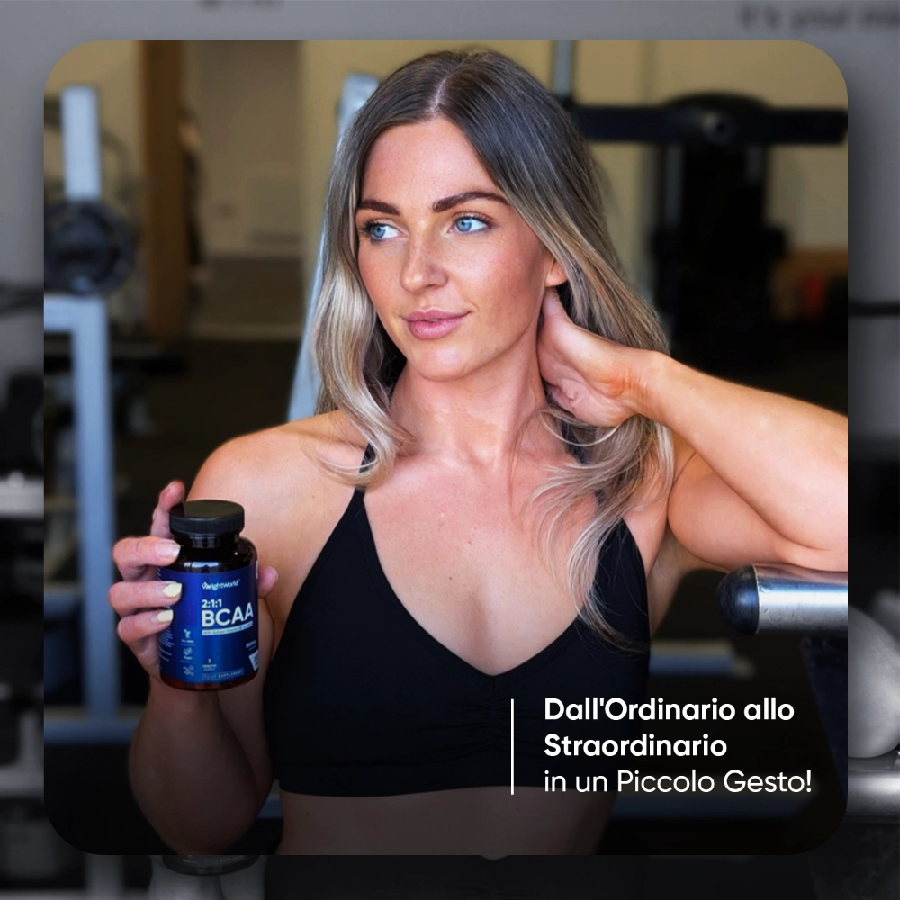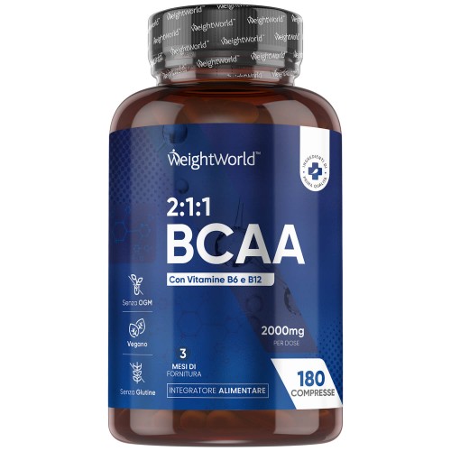 BCAA con B6 Compresse di WeightWorld è un innovativo integratore naturale in compresse ideato per potenziare e definire i muscoli. Contiene tre aminoacidi essenziali che forniscono all’organismo un adeguato apporto di proteine che completano in maniera efficiente la routine di allenamento di ogni atleta. Ideale non solo per i bodybuilder ma anche per gli assidui frequentatori di palestre, questa formula di aminoacidi a catena ramificata è arricchita dalla presenza della Vitamina B6 che contrasta la sensazione di fatica e stanchezza.