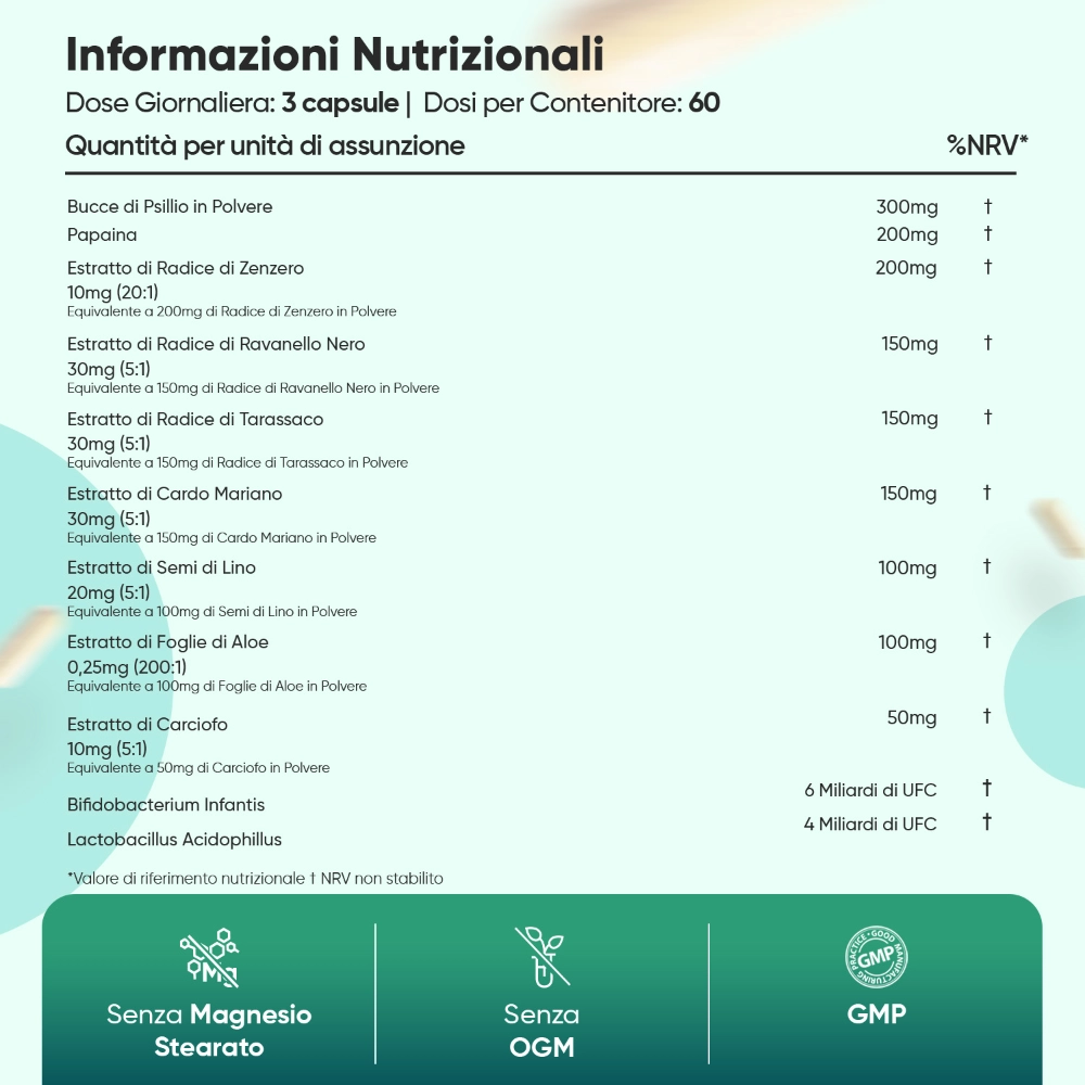 - Ogni capsula offre un mix di 13 ingredienti naturali per aiutare la detossificazione e la pulizia dell’organismo.