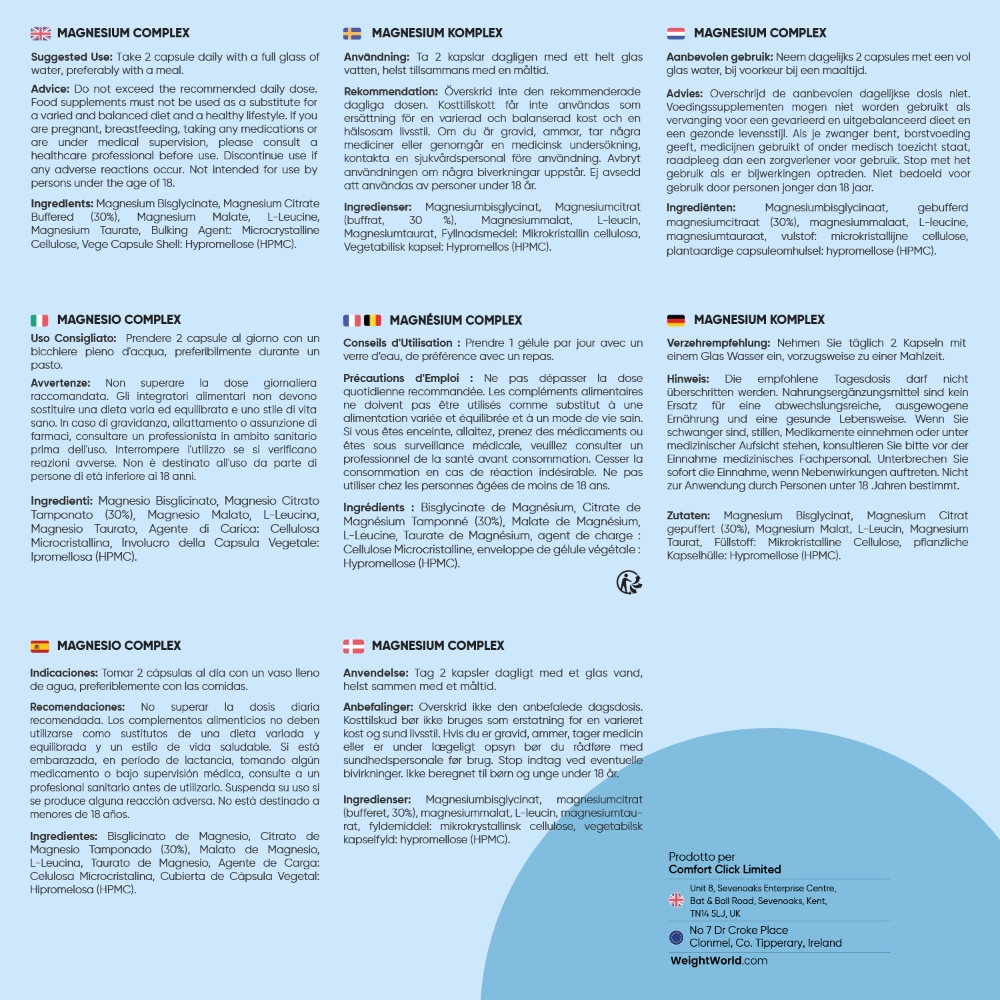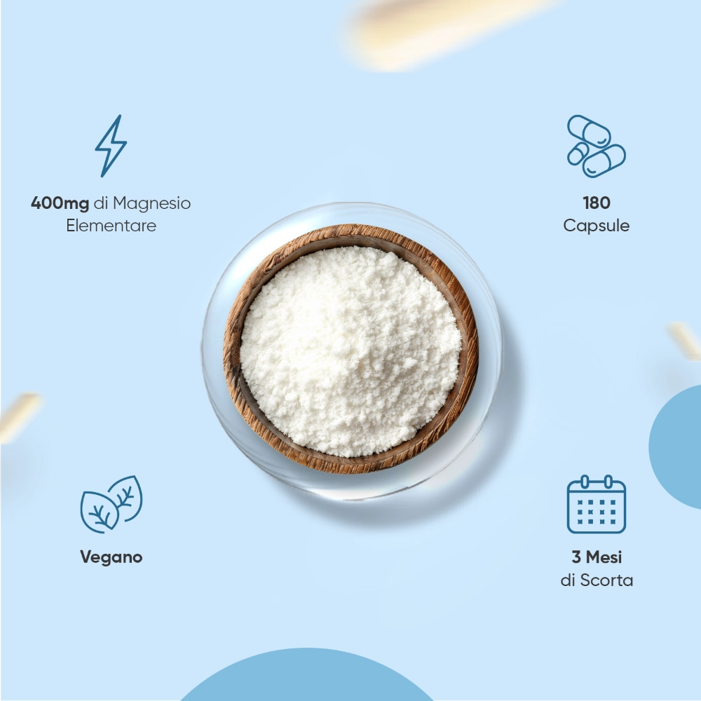 - 4 forme di magnesio in un'unica capsula: bisglicinato, citrato, malato e taurato