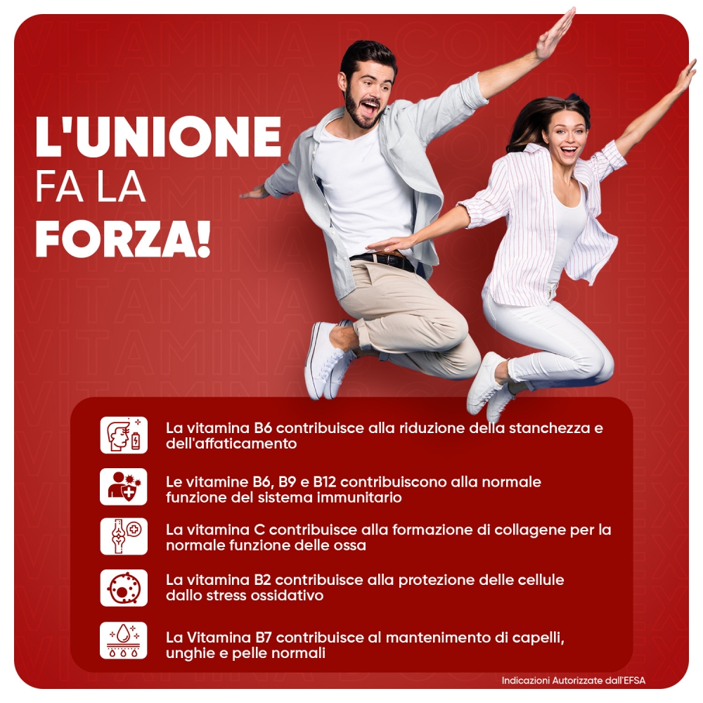 Le vitamine del gruppo B contenute in Vitamin B Complex sono essenziali per il benessere e l’energia del corpo. La Tiamina, ad esempio, si occupa di trasportare l’energia per il corpo; la Riboflavina supporta il metabolismo, trasformando grassi, proteine e carboidrati in energia, mentre la vitamina B12 è fondamentale per le funzioni cognitive e la creazione dei globuli rossi che trasportano ossigeno nel corpo. Ecco alcuni dei principali benefici dell’integratore di vitamina B: